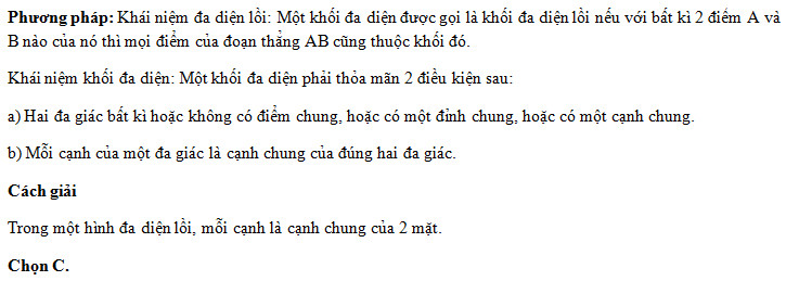 Trong một hình đa diện lồi, mỗi cạnh là cạnh chung của tất cả bao nhiêu mặt?