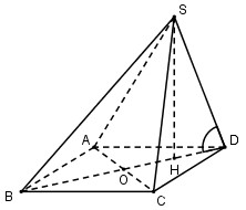 Cho hình chóp S. ABCD có đáy ABCD là hình vuông tâm O, \(BD = a\). Hình chiếu vuông góc H của đỉnh