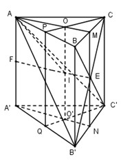 Cho hình lăng trụ đều \(ABC. A'B'C'\) có cạnh đáy bằng a, cạnh bên \({\rm{AA}}' = \dfrac{{2a}}{3}\).