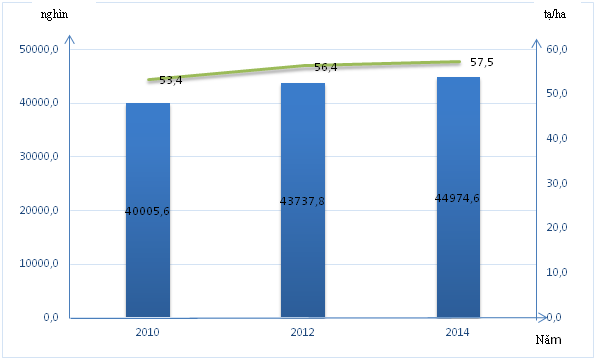 NĂNG SUẤT VÀ SẢN LƯỢNG LÚA NƯỚC TA GIAI ĐOẠN 2010-2014