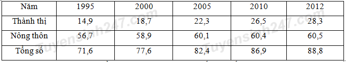 Cho bảng số liệu: Dân số nước ta năm 1995 – 2012 (đơn vị: triệu người) ( Nguồn web:
