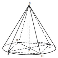 Cho hình chóp đều S.ABCD, đáy có cạnh 2a, cạnh bên bằng 3a. Hình nón (N) ngoại tiếp hình chóp
