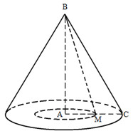 Cho tam giác ABC vuông tại A cạnh \(AB = 6,AC = 8\), M là trung điểm AC. Tính thể tích khối tròn xoay
