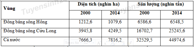 Cho bảng số liệu: DIỆN TÍCH VÀ SẢN LƯỢNG LÚA CỦA CẢ NƯỚC, ĐỒNG BẰNG SÔNG HỒNG VÀ