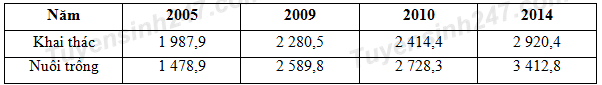 Cho bảng số liệu: SẢN LƯỢNG THỦY SẢN NƯỚC TA, GIAI ĐOẠN 2005 - 2014 (Đơn vị: nghìn