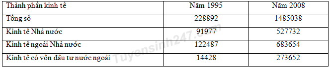 Cho bảng số liệu sau: GDP phân theo thành phần kinh tế của nước ta 1995 và 2008 (đơn vị: tỷ