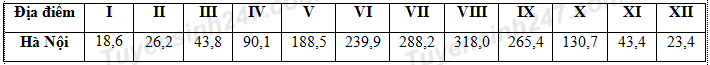Cho bảng số liệu: LƯỢNG MƯA TRUNG BÌNH CÁC THÁNG TẠI TRẠM HÀ NỘI (Đơn vị: mm) Căn cứ vào