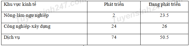 Cho bảng số liệu sau: Cơ cấu GDP phân theo khu vực kinh tế của các nhóm nước năm 2016