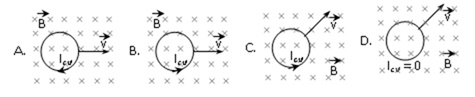 Hình vẽ nào sau đây xác định đúng chiều dòng điện cảm ứng khi cho vòng dây tịnh tiến với vận tốc trong từ trường đều: