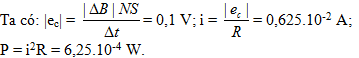 , hai đầu nối đoản mạch và được đặt trong từ trường đều có véc tơ cảm ứng từ song song với trục của ống dây và có độ lớn tăng đều 10-2 T/s. Tính công suất tỏa nhiệt của ống dây.