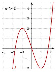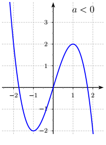 Trong các hàm số sau, hàm số nào có cực đại, cực tiểu và \({x_{CD}} < {\rm{ }}{x_{CT}}\) ?