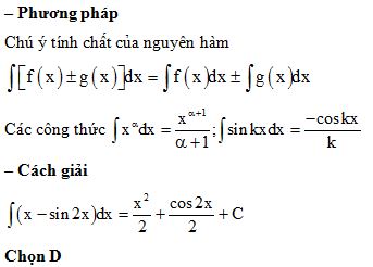Tính \(\int\limits {\left( {x - \sin 2x} \right)dx} \)