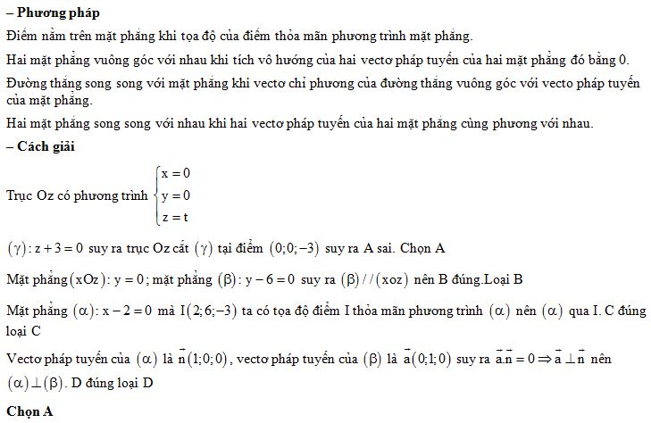 Trong không gian với hệ trục tọa độ Oxyz, cho điểm I(2;6;-3) và các mặt phẳng \(\left( \alpha \right):x - 2 = 0;\left( \beta \right):y - 6 = 0;\left( \gamma \right):z + 3 = 0\). Tìm mệnh đề sai
