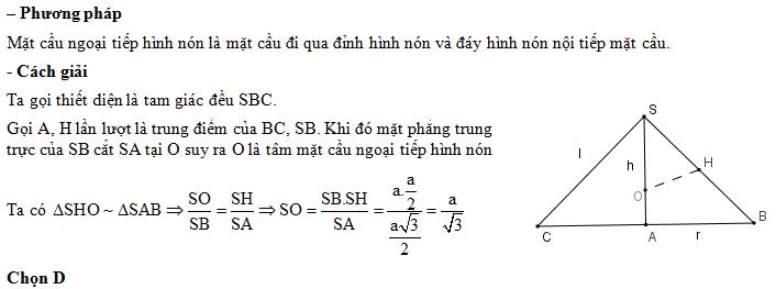Một hình nón có thiết diện qua trục là tam giác đều cạnh a . Tính bán kính mặt cầu ngoại