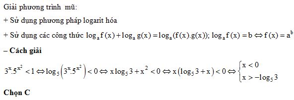 Tìm tập S của bất phương trình \({3^x}{.5^{{x^2}}} < 1\) .