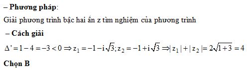 Cho \({z_1},\,\,{z_2}\) là hai nghiệm phức của phương trình \({{{z}}^2} + 2{{z}} + 4 = 0\). Tính \(\left| {{z_1}} \right| + \left| {{z_2}} \right|\)