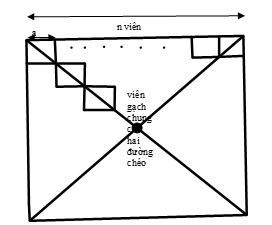 21.2 = 42 viên. Các em đã quên mất rằng hai dường chéo này sẽ có chung một viên gạch chính là giao điểm của hai đường chéo. Nên thực tế chỉ có: 42 -1 = 41 viên.
