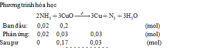 Cho 0,448 lít khí NH3 (đktc) đi qua ống sứ đựng 16 gam CuO nung nóng, thu được chất rắn X (giả