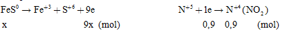 Hòa tan hoàn toàn FeS trong HNO3 đặc, nóng thu được 0,9 mol khí NO2. Biết rằng nguyên tố Fe, S trong FeS bị oxi hóa đến số oxi hóa cao nhất. Số mol FeS và HNO3 đã phản ứng lần lượt là: