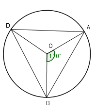 Cho đường tròn \(\left( O \right)\) Trên \(\left( O \right)\) lấy ba điểm \(A,B,D\) sao cho \(\widehat {AOB} = {120^0},\,\,AD = BD.\)