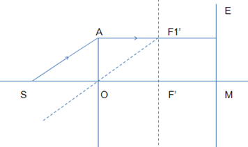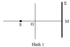 Một điểm sáng S nằm trên trục chính của thấu kính O, màn E đặt vuông góc với trục chính tại M. Thấu kính và màn được giữ cố định với khoảng cách OM = 40cm (hình 1).