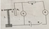 Hình 2 mô tả nguyên lý cấu tạo một chiếc cân khối lượng: Đĩa Đ được gắn với lò xo L; L có thể biến dạng để thay đổi điểm tiếp xúc của con chạy C trên biến trở Rx; R là điện trở cố định; vôn kế và ampe kế rất nhạy; nguồn điện có hiệu điện thế không đổi U.