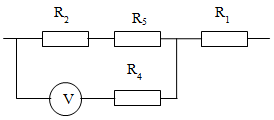 1) Tính số chỉ của vôn kế và công suất tiêu thụ của R5 trong các trường hợp: