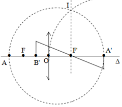 (2,0 điểm). Người ta đặt một vật phẳng nhỏ vuông góc với trục chính của một thấu kính hội tụ. Nếu đặt vật tại A thì ảnh của vật là ảnh thật nằm tại A’. Nếu đặt vật tại B thì ảnh của vật là ảnh ảo và cao bằng ảnh tại A’. Các điểm A, B, A’, B’ đều nằm ở trên trục chính ∆ của thấu kính, trong đó A và B cùng nằm phía trước của thấu kính.