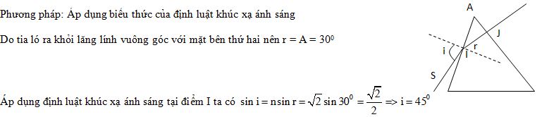 . Tia ló truyền thẳng ra không khí vuông góc với mặt thứ hai của lăng kính khi góc tới i có giá trị: