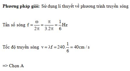 Phương trình sóng tại nguồn O có dạng u=4cos(πt/3) (u tính bằng cm, t tính bằng s). Bước sóng λ= 240 cm. Tốc độ truyền sóng bằng