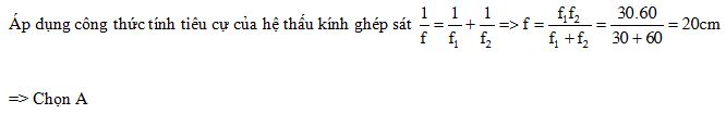 Hai thấu kính ghép sát có tiêu cự f1=30cm và f2=60cm. Thấu kính tương đương hai thấu kính này có