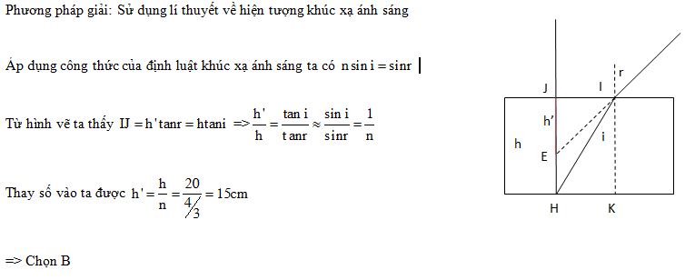 Một người nhìn xuống đáy một chậu nước (n=4/3). Chiều cao của lớp nước trong chậu là 20