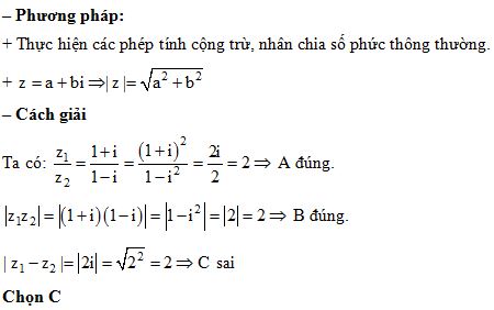 Cho hai số phức \({z_1} = 1 + i;\,\,{z_2} = 1 – i \) Kết luận nào sau đây là sai?