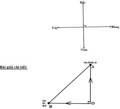 Trên một vùng biển được xem như bằng phẳng và không có chướng ngại vật. Vào lúc 6h có một tàu cá đi thẳng qua tọa độ y theo hướng Nam – Bắc với vận tốc không đổi. Đến 7h một tàu du lịch cũng đi thẳng qua tọa độ y nhưng theo hướng Đông – Tây với vận tốc lớn hơn vận tốc tàu cá 12km/h. Đến 8h khoảng cách hai tàu là 60km. Tính vận tốc mỗi tàu.