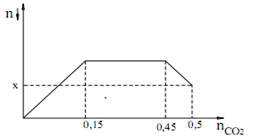 Sục CO2 vào dung dịch hỗn hợp gồm Ca(OH)2 và KOH ta quan sát hiện tượng theo đồ thị hình bên