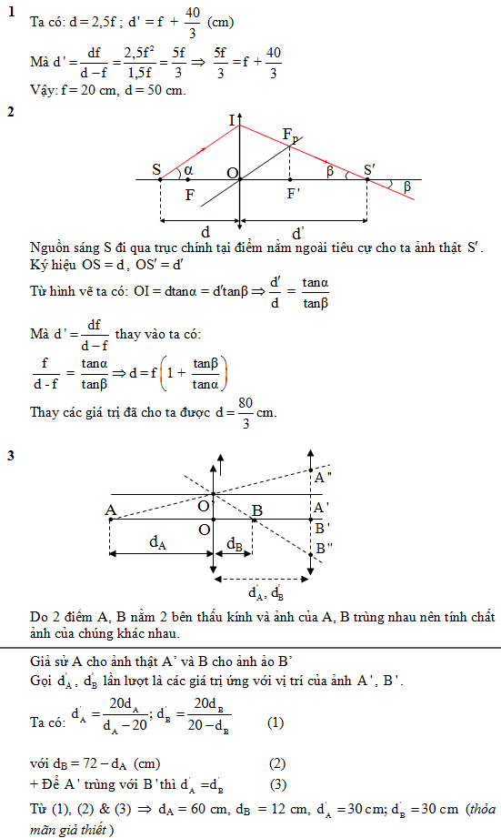 Chú ý: Học sinh được sử dụng trực tiếp công thức thấu kính khi làm bài.