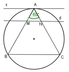 Gọi \(d\) là đường thẳng song song với \(Ax.\) Giả sử rằng \(d\) cắt \(AB,\,AC\) lần lượt tại \(M\) và \(N.\) Khi đó tam giác \(AMN\) là tam giác: