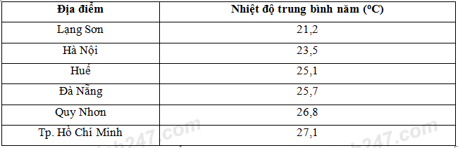 Cho bảng số liệu : Nhiệt độ trung bình năm tại các địa điểm ở nước ta Nhận xét nào sau