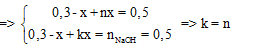 Hỗn hợp X gồm 2 axit no A1 và A2. Đốt cháy hoàn toàn 0,3 mol X thu được 11,2 lít CO2 (đkc). Để trung hòa 0,3 mol X cần 500 ml dung dịch NaOH 1M. CTCT của 2 axit là