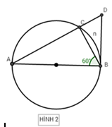 Trong hình 2 có \(AB\) là đường kính của \(\left( O \right)\). \(DB\) là tiếp tuyến của \(\left( O