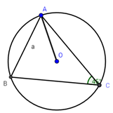 Tam giác \(ABC\) nội tiếp đường tròn \(\left( O \right)\) biết góc \(\widehat C = {45^o}\) và \(AB = a\).