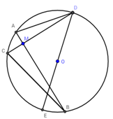 Cho đường tròn \(\left( {O;R} \right)\) và một điểm \(M\) bên trong đường tròn đó. Qua \(M\) kẻ hai dây cung \(AB\) và \(CD\) vuông góc với nhau (\(C\) thuộc cung nhỏ\(AB\)). Vẽ đường kính \(DE\). Khẳng định nào sau đây là đúng.