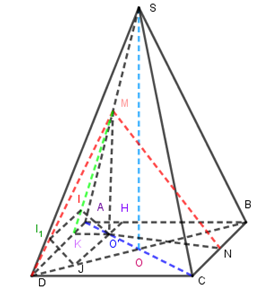 Cho hình chóp tứ giác đều \(S.ABCD\) có cạnh đáy bằng \(a.\) Gọi \(M,N\) lần lượt là trung