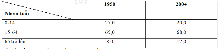 Cho BSL: CƠ CẤU DÂN SỐ THEO NHÓM TUỔI CỦA HOA KỲ. ( Đơn vị: %) a. Vẽ biểu đồ thể hiện cơ