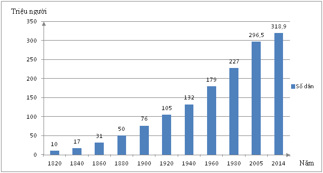 a. Vẽ biểu đồ thể hiện số dân Hoa Kỳ qua các năm trên.