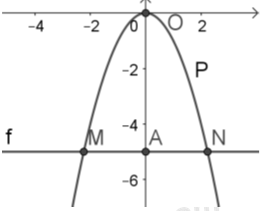 Cho parabol \(y=-{{x}^{2}}\). Vẽ đường thẳng song song với trục hoành cắt trục tung tại điểm \(-5\) và cắt parabol tại \(M\) và \(N\). Diện tích tam giác \(OMN\) là
