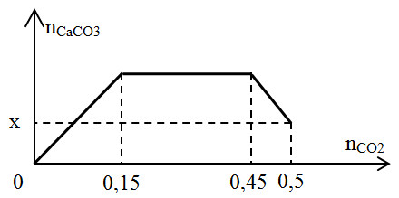 Sục CO2 vào dung dịch hỗn hợp gồm Ca(OH)2 và NaOH ta quan sát hiện tượng theo đồ thị hình bên