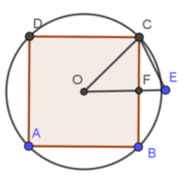 Cho hình vuông nội tiếp đường tròn \(\left( {O;R} \right)\). Chu vi của hình vuông là