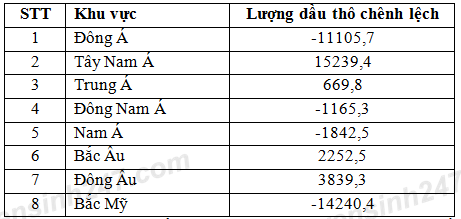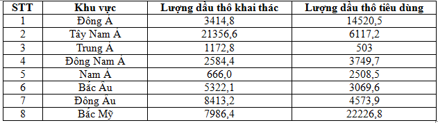 Lượng dầu thô khai thác với lượng dầu thô tiêu dùng có sự chênh lệch lớn ở khu vực:
