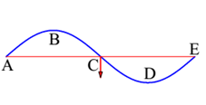 Một sóng ngang truyền trên một sợi dây rất dài với tần số f = 10 Hz. Tại một thời điểm nào đó sợi dây có hình dạng như hình vẽ. Trong đó khoảng cách từ vị trí cân bằng của điểm A đến vị trí cân bằng của điểm D là 60 cm và điểm C đang đi xuống qua vị trí cân bằng. Sóng truyền theo chiều